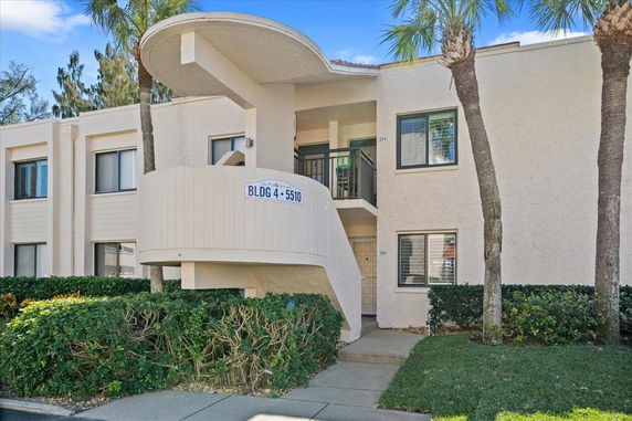 5510 La Puerta Del Sol Blvd S sits in St. Petersburg, close to Blind Pass Road and 75th Avenue. The building enjoys views of the golf course and city. The Gulf of Mexico is nearby, offering a pleasant waterfront atmosphere. Tropical landscaping surrounds this low-rise structure.