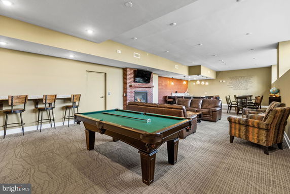 Interior view of a club house featuring a pool table, seating area with couches, and dining tables.View ListingMLS ID #PAMC2163528