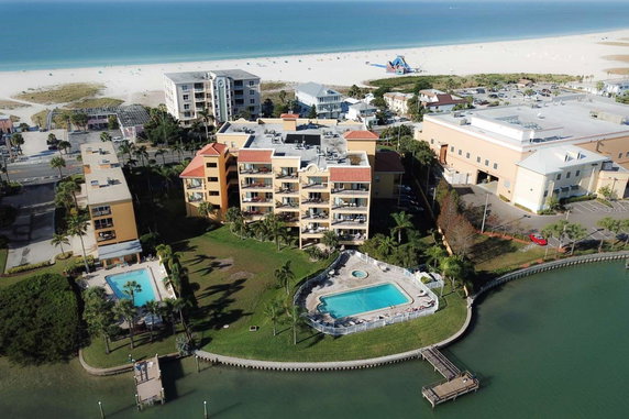 This location provides direct access to Treasure Island Beach. It is beautifully landscaped and offers views of the intra-coastal waterway. Nearby restaurants include Sloppy Joe's, VIP Lounge, and CJ's On the Island. Shopping and entertainment options also lie within a short distance, making it a desirable spot for vacation rentals or long-term living.