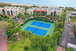 The community is gated and features 24/7 security. Residents enjoy a variety of amenities such as an Olympic-size heated pool, two Jacuzzis, and tennis courts. There are also pickleball courts, shuffleboard courts, and a sand volleyball court. Social gatherings can take place in the clubhouse or along the mile-long island boardwalk.