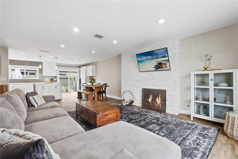 We know that this market has been a bit of a roller coaster ride, full of ups and downs. Fortunately, we have something better to share with you… that’s more like a leisurely cruise down Main St. 12700 Newport Ave #6 is a completely remodeled and stylish single-story condo, located in a private community less than 10 mins from Old Town Tustin. Entering the home, you’re welcomed by an open concept with tasteful contemporary design, straight from your favorite home decor show. The sunlit living room is generously sized, complete with a gas fireplace that also acts as a serious statement piece. Traveling towards the kitchen, there’s enough space for a large family-style dining table, which allows for plenty of hosting and entertaining. Speaking of hosting, family or guests can gather around the large island or dine al fresco on the private patio. You know how sometimes a kitchen remodel becomes more style over function? Well, that didn’t happen in this home. This kitchen is finished with stainless steel appliances, quartz counters, TONS of cabinet space including functional drawers in the island, AND a large built-in pantry with wine fridge and coffee bar. Almost too much to list. Wood-patterned tile floors carry throughout the home; both a durable and stylish choice. Located off the hall, you’ll find two bedrooms and a remodeled full bathroom. Finishing off the home is a large master with two large closets and an ensuite complete with a dual vanity, walk-in shower, stackable full-sized washer and dryer. Within the community, you’ll be glad to see well-maintained exteriors and landscaping, as well as a community pool, clubhouse, and your own 2 car garage. HOA fees cover water, trash and gas. Electricity is the only utility you pay. And outside of the community, your options are endless. Enjoy close local spots like The Lost Bean, or Tustin Brewing Company, get your shopping done at one of the many local markets. And for dining/entertainment, take the less than 2 mile trip to Old Town Tustin. For the commuters, the 5, 55, and 22 freeways are all a short distance from home. Well, you’ve hung in long enough. What are you waiting for? Tour today!