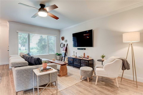 Welcome to a true gem in the well-kept, gated community of Rancho San Juan in Tustin. This stunningly remodeled 2 bedroom 2 bathroom condo has been upgraded to perfection with no detail spared. The most recent upgrades in the kitchen include quartz countertops, newer whirlpool appliances, under cabinet lighting features, soft-closure shaker cabinets and hardware, an under mount stainless steel sink, and subway tile backsplash. A slider door and screen opens up to the sundrenched dining room that leads to a large private patio, perfect for entertaining friends for dinner or sunny relaxation. The living room features an open entertainment area with built in cabinets and drawers offering ample storage plus a hallway linen and coat closet. Bathroom upgrades in the primary bedroom include a walk in shower with subway tile throughout, glass and iron shower door, dual sink vanity, recessed lighting with sconces and mirrors. The secondary bedroom offers similar features with a vanity and tiled shower tub combo. Bonus! One of the most uncommon features of this home is the private laundry closet on the patio, most units in Rancho San Juan share a common laundry area. Just steps from the unit is a covered parking space with two locked cabinets for additional storage. This home's location is unparalleled - just minutes away from every day necessities; Tustin Unified Schools, Tustin and Irvine Marketplace, Old Town Tustin, the District, freeways, shopping, dining and entertainment.