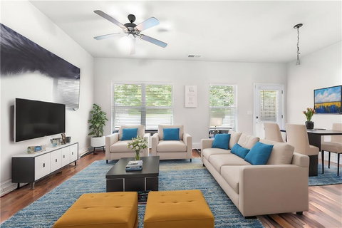 NEARLY NEW BEAUTY LOCATED JUST 7 MILES FROM HARTSFIELD JACKSON AIRPORT AND HWY 85! This four bed three bath townhome nestled in a gated community offers all the features of new construction!! A wide-open floor plan makes this home perfect for entertaining or a simple evening of lounging and relaxing! I mean the home offers everything: Granite countertops throughout, open kitchen with center island overlooking the family room and separate breakfast area, stainless steel appliances, subway tile back-splash, luxury vinyl flooring, cam lights and blinds throughout!! Come and see!! (Home is virtually staged)
