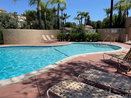 The building includes several amenities, like a pool and spa for relaxing. Sidewalks, storm drains, and street lights add to the community feel. The nearby park ensures outdoor space for leisure activities. The complex positions residents conveniently next to the pool area, enhancing accessibility.