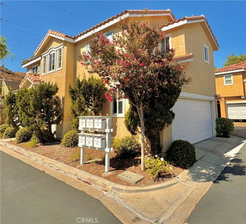 BACK ON MARKET at no seller's fault. NO MELLO ROOS. Low HOA includes water, trash and many amenities like pool, spa, bbq area, gym and many more. Top school district. Corner unit. Impeccable 3-bedroom, 2.5-bath townhome nestled in the beautiful city of Valencia. This one has a charming backyard and sideyard where you can plant. This property is conveniently situated with no adjoining unit on the other side. laundry inside unit. This residence boasts upgraded laminate flooring throughout, complemented by stylish tile countertops in the kitchen. Enjoy the outdoor lifestyle with a spacious, covered back patio perfect for entertaining. Solar ready. The community association offers a wealth of amenities for your enjoyment like pool, playgrounds and many more. This home is a must-see! Priced to sell.