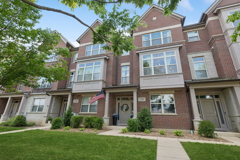 Stunning and completely updated townhome in desirable Aspen Pointe! Brick and stone 3-story home with countless upgrades in a beautiful neutral palette that is light and bright with a fantastic floor plan! Nothing to do but move in and ENJOY! First floor office/den that includes a closet and can be used as a 4th bedroom. Access to the 2-car attached garage with additional storage is also on the first floor. The second floor boasts a bright and sunny living room with upgraded lighting throughout. The living room has two sliding glass doors that lead to a large deck perfect for grilling! The sun filled dining room leads to the spacious kitchen with many upgrades including new 42" white cabinets, upgraded stainless steel appliances, a sundry sink in addition to the main sink, quartzite counter tops, beautiful backsplash, pull-out garbage and recycling and much more! The third floor hosts the primary bedroom suite which has a walk-in closet and a full bathroom with an extra-large extended shower and beautiful Annie Selke upgraded tile. The vanity is Carrera marble, with upgraded lighting and faucet fixtures, and a whisper quiet fan. 2 additional large bedrooms and a full bathroom with tub are also on the 3rd floor. The full guest bathroom also features a Carrera marble vanity, and new upgraded tile. Very large closets for each bedroom. Don't forget there is a newer full-size washer and dryer located on the bedroom level with tons of overhead cabinet storage above. Great location, close to shopping, library, entertainment, restaurants, schools, Park district pool and tollway! Award Winning School District! You don't want to miss this!