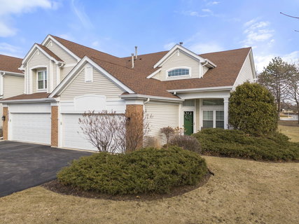 Highly desirable First Floor Primary Bedroom!! This lovely END Unit Cantera Village home offers Volume ceilings on the main level!! The Kitchen was completely remodeled in 2015 with new maple cabinetry, granite counters, new appliances and hardwood floors! The newer cabinets are complete with many drawers! It is a great entertaining Kitchen featuring an island and table space! Enjoy a cozy gas fireplace with updated surround! Windows replaced on the main level Living Room! Primary bathroom completely renovated with walk in shower, new vanity, counter and floor. Plenty of room in the Primary bedroom for a king size bed plus both a walk-in and bifold closet. The second level features 2 additional bedrooms, Loft and HUGE 12 x 10 storage room. Crown molding in Kitchen and Primary Bedroom. New water softener 2024. Furnace and A/C approx 2015. Two car garage with extra long driveway -This unit offers plenty of storage. Prairie path just west of the community. Super Convenient to Expressway, Shopping, Restaurants, Movie Theater, 2 Train lines, Forest Preserve! District 200 Schools. All the conveniences! No rentals allowed.