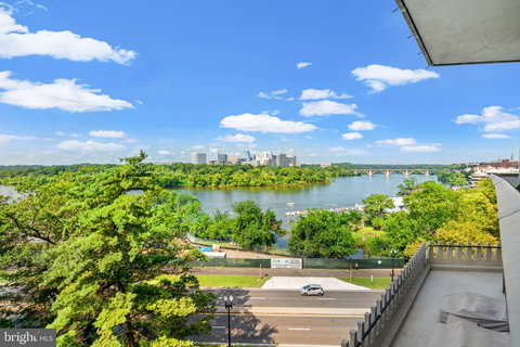 Eighth floor, corner unit with unobstructed views from every room of the Potomac River, from Georgetown to the Memorial Bridge including the city of Arlington skyline! Completely renovated unit with 2Bedrooms/2 Baths + half bath with over 2600 SF. Balcony and new floor-to-ceiling sliding door windows along the entire perimeter of the apartment to step out from each room. Luxuriously large foyer perfect for art and expansive Living Room includes wall of built-in bookshelves and bar. Additional sitting area perfect for an art gallery and room for a grand piano. The Dining Room sits affording views out of a corner wall of windows ideal for sunset viewing and waterfront activity. A library/office/den is off the chefs kitchen. The bright and spacious kitchen includes top of the line appliances, custom cabinetry and marble countertops. Washer/dryer in the unit. Excellent storage throughout plus additional designated basement storage unit. Situated a few minutes walk to the Kennedy Center, the new Reach, Georgetown, the National Mall and river pathways. Watergate West also boasts a gym and outdoor pool with beautiful landscaped gardens. One assigned parking spot (rented at $300/month each) complete this spectacular offering. Parking is prepaid for 2 years.
