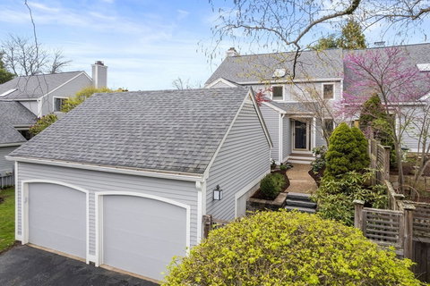 This stunning D Style unit is located at the distinguished Hills at Mainstone. The main floor, with beautiful hardwood floors and an open concept design, is the hub of the home. The kitchen is beautifully renovated with custom cabinetry, updated appliances and a separate breakfast area that leads to an outside deck. A dining room flows into the large living room with a custom stylish fireplace mantel, large windows and sliders to private outdoor gardens. The stone patio and professionally landscaped yard are visible and accessible throughout the main living area. The large primary bedroom and ensuite bathroom complete the first floor. There are two additional bedrooms upstairs and a loft area that is often used as an office.The finished lower level can easily accommodate an exercise room, home theater and separate office. Situated within a peaceful pocket of natural surroundings that includes a pool, tennis/pickleball courts and clubhouse. Close to town amenities & the Mass Turnpike.