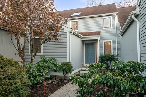 Welcome to The Hill's at Mainstone, a lovely 146-unit townhouse community conveniently located on the southeast side of Wayland between Routes 20 & 30 with easy access to Routes 9,16, 95, & 90. This bright and sunny south easterly facing open floor plan "D' unit consists of 3 bedrooms & 2.5 baths. Enjoy first floor living with an oversized eat-in-kitchen with stainless steel appliances, stone countertops, kitchen island, laundry room and an 8' x 10' deck. Dining room leads to a living room with cathedral ceilings, walls of glass and a fireplace and a 21' x 19' deck. First floor primary bedroom suite with updated bath, double vanity, closets & private seasonal views. Two bedrooms, a sitting area & a full bath are located on the second floor. Lower walkout level features an office, family room with fireplace and abundant storage. Enjoy this lovely parklike community, tennis/pickleball courts, pool, clubhouse & all of the conveniences of suburban living at its finest! Hurry it won't last!