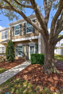 Meadow Pointe life in thriving Wesley Chapel! This gated end-unit townhome at Vermillion is tucked into lush landscapes yet minutes from SR-56, Shops at Wiregrass, and all the action Wesley Chapel - one of Tampa's fastest growing suburbs, brings to life. Pull up to your designated parking space, step through manicured landscaping, and walk into a beautifully designed townhome featuring luxury vinyl plank flooring throughout and an abundance of natural light. The kitchen boasts stainless steel appliances, granite countertops, custom wood cabinets with crown molding, and space for a small breakfast nook. A custom vanity half bath sits conveniently on the main floor. The spacious living and dining area flows out to a screened lanai with an exterior paved patio overlooking an HOA-maintained backyard with trimmed hedges, palms, blooming crape myrtles, and live oaks — ideal for morning coffee in the Florida sunshine. Upstairs, the primary suite features vaulted ceilings and an en suite bath, while the second bedroom offers its own en suite. Community amenities include a resort style pool, fitness center with True machines, basketball, tennis, pickleball, playground, and walking paths. Conveniently located near the upcoming Legacy Wiregrass Ranch (Wesley Chapel's first true downtown), Wesley Chapel Union Station (2027), a brand-new lifestyle hub anchored by Whole Foods, Life Time Fitness, CAVA, Naked Farmer, Pop-Up Bagels, Curry's House Pizza, Chipotle, The Tox, and more — plus coming at the end of April, Florida Medical Clinic Orlando Health Wiregrass Ranch Hospital. Wesley Chapel is widely recognized for having top-rated, high-performing public, charter, and preparatory schools. Come live where everything is happening in North Tampa!