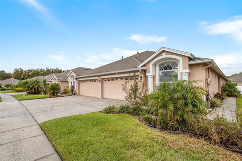 Welcome to your new cozy home in Wesley Chapel, Florida! Through the charming blue front door, you’ll be thankful to have plenty of space to kick off your shoes and settle in for the night. Leave your worries at the door and head to the kitchen where you’ll find stainless steel appliances, bright cabinetry, and the real prize— a gas stove! Throw your dirty socks in the adjoining washer/dryer closet, and then grab a snack from your new Samsung refrigerator (2021). Speaking of new, your home comes with contemporary warm new vinyl flooring that was installed in 2022, fresh paint, and a brand new 200 square feet screened lanai with brand new ceiling fans and lights. There’s even a custom painted mural in the garage, and the garage floor was recently resurfaced. You won’t have to worry if your furniture will fit— there’s over 1,700 square feet in this 3 bedroom, 2 bath house with plenty of space for extra storage cabinets or decor. There’s plenty of natural light, ceiling fans in every room, and you get to enjoy the benefits of maintenance-free living by having the exterior of your home 100% taken care of! The roof was recently replaced in 2020 and the AC was replaced in 2021. There’s an HOA Community Center with a pool, basketball court, tennis court, and a playground. Call your agent today for a private showing!