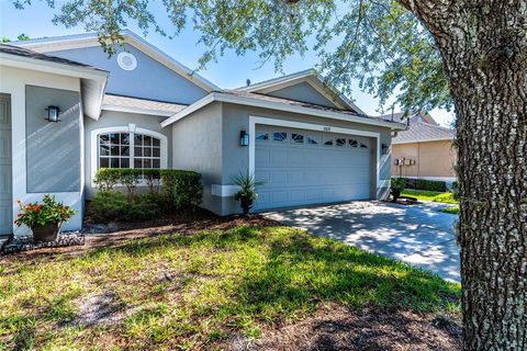 Wow!!! What a gorgeous impeccably maintained villa located in the gated Whitlock neighborhood of Meadow Pointe Community in Wesley Chapel. This beautiful - cottage like villa features 2 beds plus flex room, 2 full baths, 2 car garage and a cute covered patio to enjoy Florida’s weather year round. As you come in you will be captivated by the flowing open concept, the airy feel & the abundance of natural light. The family and dining rooms are spacious, offering plenty of room for every member of your family. This light and bright living room, accented with large sliding glass doors to the beautiful covered patio, allow you to extend your living space to the outdoors. In the rear of the home there’s the gorgeous owner’s suite with a cozy window nook, his and her walk-in closets and a well appointed ensuite with dual sinks, make up vanity, linen closet and a large walk-in glass door shower. The kitchen flows seamlessly into the great room, completed with a breakfast nook, making this space perfect for entertaining and everyday living! Spark your inner chef in this beautiful kitchen loaded with a gas stove, plenty of counter & cabinet space, a pantry, beautiful granite counter tops & solid wood cabinets. Right off the breakfast nook area is the beautiful office/flex space, that can be easily converted into a guest bedroom or accented with french doors for added privacy. Located towards the front of the home, you’ll find the beautiful light and bright guest bedroom just steps away from the guest’s full bathroom. From every light switch, air vent, and the baseboard, this home has been carefully taken care of and is 100% move in ready. Whitlock Community is gated, ready for you to enjoy privacy and maintenance free living. This neighborhood is part of the desirable Meadow Point III, that has a great clubhouse, beautiful sparkling pool, fitness center and basketball, racquetball, and tennis courts. This home is zoned for TOP RATED Public Schools. Short drive away from fantastic shopping centers such as The Shops at Wiregrass and The Tampa Premium Outlets. Close proximity to PHSC, Advent Hospital, Center Ice, and major highways 1-75 & 1-275 for easy commuting. Close by is the Wiregrass Ranch Sports Complex, a 98K sqft. indoor space, a regional and national draw for youth and amateur sports. Oh, and to top it off, a 146 acre Town Center is in the works, right in the middle of Wiregrass Ranch to include a Publix Supermarket and other stores. Come make this move-in ready Wesley Chapel villa your “Happiest place on earth.”