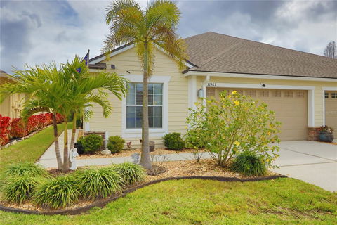 Wonderful conservation and spacious villa home in the Meadow Pointe III Larkenheath gated community. There have been numerous updates, such as LG refrigerator, microwave, range and dishwasher, stunning white quartz kitchen counters and designer back-splash, along with updated satin nickel kitchen hardware and faucet. White quartz counters in all baths with updated faucets, cabinet hardware and lighting. You'll appreciate the bamboo flooring throughout most of the home. This villa has alot of natural light with vaulted ceilings, with a split floor plan that allows visiting guests their own wing. The great Den/office is very open space and has a closet. The spacious kitchen is home to a wonderful pantry and the laundry. There is more than enough room for a dinette area. The kitchen bar overlooks the great room which give you great conservation views. Retreat to the master suite where you'll find a double window also overlooking the conservation area. The master closet is large and built out to maximize the space. The delightful quartz counters provide a clean, fresh feel to the master bath with a large shower area. Larkenheath- a gated community where your monthly HOA provides for lawn maintenance, exterior painting and the association has just recently replaced the roof. Enjoy swimming at the community pool and playground adjacent to your villa. Meadow Pointe In the heart of New Tampa close to all amenities & major highways including I-75, I-275 and I-4 + Wiregrass Mall & the NEW Premium Tampa Outlets. Call today for your showing!