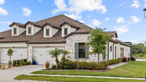 This Luxury Single family attached home has a MAGNIFICENT POND VIEW! Don"t miss out on this unique opportunity to live in the exclusive gated village of Santeri in Estancia at Wiregrass. This jaw dropping home is like NEW and shows like a MODEL home , offering 3 large bedrooms, 2 full bathrooms and one half bath, dining area , living area and a large two car garage with epoxy flooring and two hanging storage shelves. The garage also has an EV charging outlet to charge your vehicle. This MAINTENANCE FREE villa provides leisurely living;HOA includes lawn maintenance, roof replacement, exterior paint as well as trash removal.The open concept layout seamlessly connects the kitchen to the living and dining areas, creating an inviting space for entertaining or relaxation. This home offers endless upgrades throughout boasting high ceilings, crown molding in the foyer, kitchen, bedroom, living and dining rooms,, upgraded solid wood interior doors, Water softeners well as an Instant hot water heater. The kitchen has Quartz countertops and 42 inch cabinets, high end appliances and a large walk-in pantry. The relaxing owners suite is like walking into a hotel with its serene views of the glistening pond, upgraded lighting and automatic shades.The en-suite bathroom is a spa like oasis, complete with modern fixtures and finishes.It has double sink vanities ,spacious FRAMELESS walk-in shower, a towel warmer and a huge walk in closet with built ins. There is also a Private room that can be used as a library, den, office or even your own speakeasy!