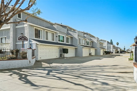 This lovely 3 bedroom, 2.5 bath tri-level townhome is one of only a few 3 bedroom models in the Sunset Village complex! The community is quiet and well-maintained and includes a fenced pool & spa area, 2 large open grassy areas, ample visitor parking and is located in a great neighborhood convenient to all! The entry level consists of a spacious living room with a cozy fireplace and sliding glass doors that lead out to a large front patio which is great for gathering and barbequing. There are beautiful laminate floors that extend throughout the entire unit. The lower level has an attached 2-car garage and 2 laundry options; one in the garage and one indoors. The garage features epoxy floors and storage shelves. On the second level you'll find a huge dining area with lots of natural light. Adjacent is the kitchen which has been updated with granite counter tops. There is also a remodeled half bath next to the dining area. The 3 bedrooms are located on the next level up. The master bedroom includes a generous walk-in closet and an attached full bath with dual sinks. The other 2 bedrooms share the hall bath, which is another full bath. All 3 bathrooms have been updated with beautiful glass sinks and upgraded faucets. There is abundant storage throughout the home, including an oversized wrap-around closet under the stairs. This astounding townhome is really a must see!
