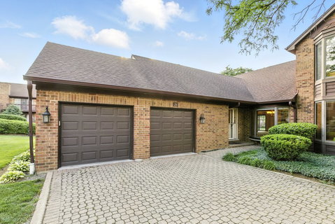 Tucked away in a quiet cul-de-sac, this rarely available ranch-style condo/townhome in Courtyards of Westchester with an attached 2-car garage offers the perfect blend of comfort, space, and privacy. Step inside to a welcoming foyer that opens into a spacious dining room -ideal for entertaining. The vaulted Living room is a standout feature, complete with a wet bar and direct access to your private patio, where peaceful views of the wooded area await. The spacious kitchen is ready for your culinary adventures with plenty of cabinetry, granite countertops, and a charming breakfast nook. A master suite featuring a whirlpool tub, separate shower, and a walk-in closet that won't disappoint. A second generously sized bedroom and a full hallway bath offer comfort for guests or home office flexibility. The convenience of main-level laundry with a full-size washer and dryer makes everyday living a breeze. Enjoy quiet mornings or unwind in the evening on your north-facing patio surrounded by nature. All of this just minutes from expressways, Oakbrook Mall's shopping and dining scene, and the scenic trails of Salt Creek Woods. LIVE & ENJOY Single-level living at its best!