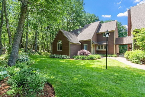 Sophisticated Blanchard Farms end unit condo with NO SHARED WALLS - stylishly UPDATED with NO EXPENSE SPARED! Striking black GRANITE COUNTERTOPS compliment CUSTOM sleek CABINETRY and high-end appliances including MIELE wall oven and dishwasher, THERMADOR cooktop, SUBZERO fridge. Soaring ceilings, gleaming HARDWOOD, stunning MARBLE surround FIREPLACE, SKYLIGHTS, and glass sliders combine for bright, airy living space. Primary bedroom suite with ARCHED WINDOW and ensuite bath w/ LIGHTED GLASS SINK and MOSAIC TILED WALK-IN SHOWER with DORNBRACHT fixtures. Both 1st floor bedrooms have CALIFORNIA CLOSET SYSTEMS. Shared bath has SOAKING TUB . Family room in the expansive skylit loft. The second floor 3rd bedroom has a full bath with CURVED GLASS WALL. Plenty of room for exercise, work or games in bonus finished, walkout lower level. Enjoy your private oasis from the expanded deck that overlooks lawn, garden and woodlands. Resort-like amenities include POOL, TENNIS, CLUB HOUSE and trails.