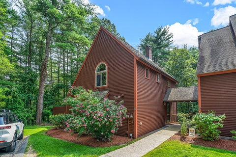 Rare 2/3BR 2.5 bath stand-alone Blanchard Farms townhouse that encapsulates the essence of comfortable & stylish living! The expansive layout is adorned w/vaulted ceilings, amplifying the space's luminosity & airiness. Highlights include a spacious private deck, (idyllic setting for leisure & outdoor gatherings w/tranquil views & abundant natural light). Dive into the pool on hot summer days, indulge in tennis matches, & explore trails through picturesque landscapes - moments from your front door! The heart of the living area is graced by a cozy FP & a thoughtfully renovated kitchen that effortlessly combines functionality & aesthetic appeal. Finished lower level (ground level) augments the home's versatility, suitable for a home office, fitness area, or media room. C/A ensures year-round comfort, while the cedar closet provides a touch of elegance & ample storage. Suburban lifestyle w/close proximity to shopping, dining, & entertainment!