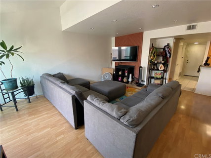 Gorgeous immaculate home with spacious 3 bedrooms and 2.5 bathrooms. All bedrooms have amazing vaulted ceilings. Laminate flooring throughout the property. Open floor plan with a large living room and a cozy fireplace. Formal dining room. Great spacious private patio. Two car direct access garage, and a two car full driveway. Both secondary bedrooms open up to a great large private balcony. Association offers a great pool and plenty of greenbelt space.