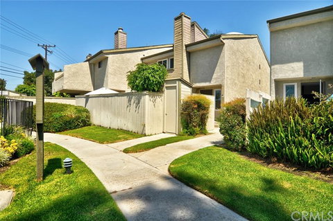 Beautiful, spacious townhome with too many upgrades to list: new carpet and paint throughout; double-pane vinyl windows and slider; updated bathrooms with new counters, sinks and tile floors; new quartz counter tops in kitchen; recessed lighting; scraped ceilings and much more. All bedrooms are upstairs and separate from the main living area. The master bedroom is huge with a vaulted ceiling, dormer window, walk-in closet and ensuite master bathroom. The other bedrooms are also large with vaulted ceilings and share a full bathroom. The living room features a fireplace and the sliding door leads to a fenced backyard with patio, grass and trees: perfect for entertaining and just steps from the sparkling pool! This home has direct entry to a two car garage with laundry connections plus driveway parking. There is also guest parking. Close to shopping, restaurants, schools and a park. Easy access to both the 405 and 22 freeways.