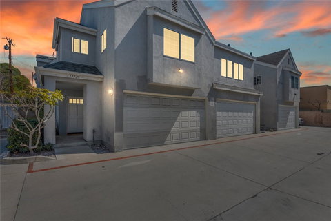 Marvelously Charming Two-Story Condo with Attached Two-Car Garage! Ideally located in a highly coveted gated community only moments from shopping and multiple restaurants, this 3BR/2.5BA, 1,300+sqft end-unit delights with a modern stucco exterior, attractive landscaping, and a conveniently covered entrance for easy package deliveries. Cheerfully fashioned with soothing tones, the main-level warmly welcomes with an organically flowing floorplan, overflowing natural light, beautiful faux wood luxury laminate flooring, a well-appointed powder room, and a sizeable living room with recessed lighting. Upgraded with careful attention to detail, the galley kitchen features richly toned custom cabinetry, gorgeous granite countertops, a custom contemporary tile backsplash, a gas stove, a built-in microwave, a dishwasher, a double sink, space for a full-size refrigerator, and an adjoining dining area with a ceiling fan. Before adventuring upstairs, explore the fully enclosed outdoor space, which impresses with an extended concrete patio, a sizeable lounging area, a secondary concrete patio, and plenty of room for grilling. For an extra touch of entertainment-friendly vibes, add luminous string lights, a few tropical plants, and/or thoughtfully-arranged furnishings. Perfectly appointed on the upper-level, the oversized primary bedroom checks off all the boxes with a deep walk-in closet and an attached en suite boasting a shower/tub combo, two medicine cabinets, and a dual sink storage vanity. Two additional bedrooms and a full bathroom are also nestled on the upper-level. Other features: 2nd floor laundry, linen cabinets, tons of storage throughout, just 1.2-miles to ER-PIH Health Whittier Hospital, 12-miles to California State University-Fullerton, quick 21-mile drive to Downtown Los Angeles, near shopping, restaurants, Starbucks, public transportation, multiple parks/trails, entertainment, and schools, and so much more!
