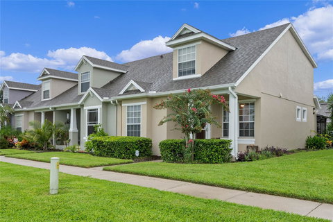 Welcome home! Nestled in the quaint and charming neighborhood of Merrick Landing, this 3-bedroom 2.5 bath, END UNIT townhome is tucked away from the hustle and bustle of Central Florida. You’ll feel right at home in this quiet neighborhood with mature trees, ponds and walking paths throughout. The front entrance of the house faces a large pond, so you don’t have to worry about cars blocking your serene view! As you walk through the front door, your first-floor master bedroom with ensuite and walk-in closet is to your immediate left; providing you with just enough privacy from the other 2 bedrooms located upstairs. Right off the entrance you will walk into your large living room that flows directly into the dining room and kitchen, making for a lovely entertaining space. The kitchen is equipped with plenty of cabinet space and two pantries for extra storage. Sliding glass doors open from the dining room to the covered and screened in patio, enjoyable even during afternoon Florida showers. In addition, you’ll find a half bath and laundry room on the first floor. Heading upstairs, you’ll find two additional bedrooms and a full bath! This townhome also features an attached 2-car garage with enough space for 2 additional cars in the driveway. There is also a community pool, conveniently located at the end of the street. With easy access to Publix, Aldi, Walmart, a plethora of local restaurants and establishments, nothing feels out of reach. You’ll also be pleasantly surprised by the close proximity to all major theme parks, malls, and even the airport. This is a wonderful opportunity to make this lovely townhome the place you call home! Schedule your showing today.