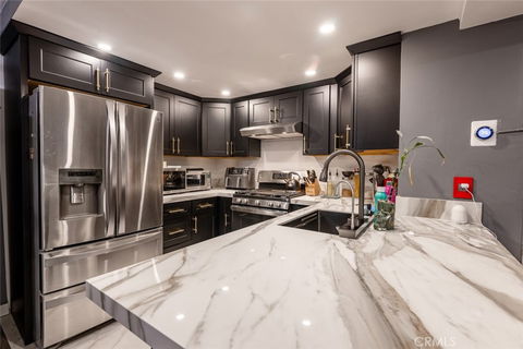Situated in Winnetka is charming 2-bedroom, 2-bathroom that is move in ready! As you enter the unit you are greeted with an open floorplan with 1,021-SqFt of living space, laminate flooring, recessed lighting, an updated AC unit, double pane windows, storage space and a laundry area. There is a bright living room featuring a corner fireplace and a private balcony. Enjoy preparing your meals and your favorite drinks in a remodeled kitchen that has granite countertops and beautiful wood cabinets. There is a dining area, as well as a breakfast bar. The setup is great for relaxing or for entertainment. Both bathrooms have been remodeled. In the Primary bedroom you have a private ensuite bathroom, along with 2 mirrored closets. The unit has 2 private parking spaces. It is located in a controlled accessed building that is beautifully maintained and has a community pool. Great location! Close to schools, markets, the Winnetka DMV, Starbucks and more.