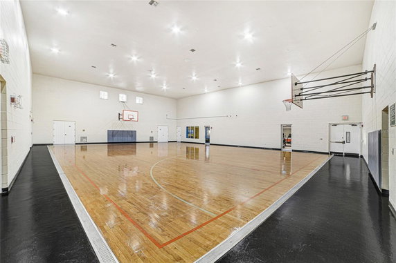Residents enjoy a variety of resort-style amenities. The community features a swimming pool, fitness center, and clubhouse. There are also tennis courts, racquetball, and indoor basketball courts. Recreation areas include a playground and a dog park, plus trails for biking and walking.