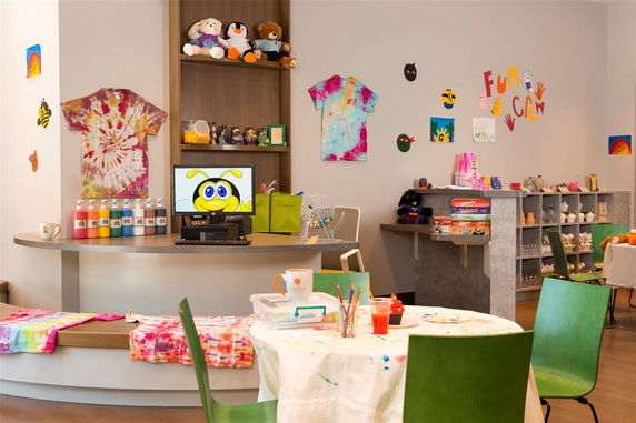 The building provides a full-service resort experience with a variety of amenities. There is a Surfari Water Park featuring a FlowRider, lazy river, and several pools. Residents have access to a full-service spa and fitness center, along with on-site dining options including bars and restaurants. Families enjoy activities like an arcade, mini-golf, and walking trails.