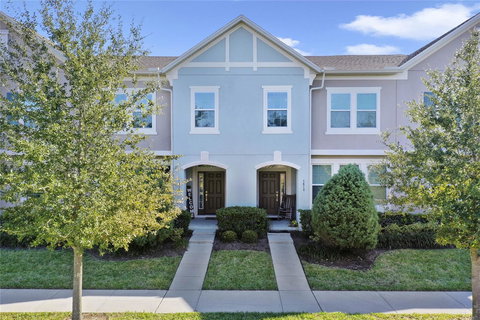 Beautiful location – right across from one of the community parks and playgrounds and a pond view. This well maintained townhouse has an open floor plan with ample natural lights. Ceramic tile floor throughout the entire main floor. Spacious kitchen with plenty of cabinets, quartz counter tops, subway tile backsplash, stainless steel appliances, an island and custom shelves in the pantry. Upstairs is a spacious master suite with a walk-in closet. The master bath has double vanities with quartz countertops, a large garden tub and a separate shower. Off the master suite is a very nice balcony. There are two other bedrooms upstairs and another full bath with double vanities and quartz countertops. The laundry room is also upstairs. In addition to the two car garage, there is an extra-long driveway that can accommodate 4-6 cars. The HOA fees include exterior maintenance, roof, and total lawn care. The beautiful amenities include a resort style pool, fitness center, club house, picnic tables by the pool, dog park, 2 playgrounds and a park. Close proximity and easy access to Disney and other theme parks, shopping and restaurants at Hamlin, and Winter Garden Village. Quick and easy access to 429. Schedule a showing today!