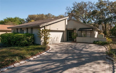 This charming 3/2 home sits on the edge of a golf course and has a serene walking trail nearby. The large living room features a cozy wood burning fireplace and a beautiful vaulted Florida knotty pine wood ceiling with large beams. Sliding glass doors lead to the huge Florida room with all windows on 3 sides. The kitchen includes all appliances and has ceramic flooring, matching stone tiled backsplash, a closet pantry, breakfast bar and breakfast nook. The pass through to the dining room provides easy access for serving and conversation. The roomy master bedroom also has sliding doors to the Florida room and a bath with a large glass and tile shower and skylight for extra light. The two additional bedrooms have sliding doors to an enclosed and screened, covered porch with a skylight. There is a nice sized 2nd bath with a tub. A two car garage and low maintenance landscaping complete the home. Located in the Tuskawilla area with easy access to the 417.