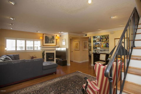 This condominium is a sight to see and the price includes furniture. As you enter into this beautiful home you are immediately invited into the family room which is adjacent to a sitting area and dramatic wet bar. You can instantly imagine hosting dinner parties where everyone is laughing and enjoying the evening. Around the corner is the large kitchen filled with a great big island and excess counter space. The kitchen opens up to the formal dining room which can also be converted to a less formal eating area. As you make your way up the hardwood staircase you will find the two bedrooms with their completely remodeled bathrooms. The first is a large bedroom with a built in office area. The bathroom is all white and truly feels like a luxury hotel spa. The second is equally as large and even has space for exercise equipment if you so please. This bath has the double vanity, gorgeous standing shower with a bench, and a full closet. This condo is perfect as a starter home as it's great floor-plan is enticing for every lifestyle. The community pool and spa is right across the walkway, so it's great for a quick dip on those very warm days. This home is a true gem!