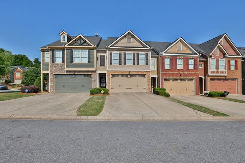 Exceptional, Beautifully Maintained Townhouse in prime location in sought after Woodstock with immediate access to 575. Inviting main level area beaming with natural light leading to gourmet kitchen with granite countertops, lighted glass cabinetry and large walk-in pantry. Spacious living room with detailed fireplace and dining area. Walk out from your living room to the outdoor patio with covered awning, and open backyard with tree backdrop, steps away from neighborhood pool. Second level has 2 spacious master bedrooms both with huge walk-in closets, and master bathrooms with relaxing separate spa tub and walk-in shower. This soaring 2 story townhouse features terrace level hardwood floors, 2 car garage, brand new roof, brand new water heater and newer AC unit (2018). Amazing neighbors, adjacent to shoppes, trails and restaurants and only 3 miles from Downtown Woodstock! Do not miss this Amazing Opportunity to live in Townview Commons Swim community with fantastic school district.