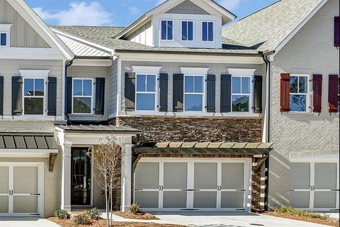 Looking for a TH that lives like a single-family home, look no further! This two-story floorplan means no need to climb stairs with groceries to get from the garage to the kitchen! Floorplan is the same as the former model home floorplan. Family Room has a 15' stacking glass door that opens the main level to a full rear patio with WOODED REAR VIEW. Open main level with 9' kitchen island, QUARTZ countertops, Stainless steel appliances, and fireside family room with added built-ins. Hardwood floors on the main & stairs. Master Bedroom with Sitting area, spacious bath with free standing tub and generous walk in closet. Two generous closets on each level are the space that make this unit Elevator ready! Mudroom entry with built-in and powder room from 2C garage. N'hood amenities include pavilion w/ grill & seating, firepit under string lights, walking trail & dog park. Enjoy Downtown Woodstock or Roswell while paying lower Cherokee County taxes. Flat screen TV over the fireplace, refrigerator and washer & dryer are all included! The only thing to do here is enjoy the privacy and move-in!
