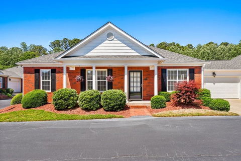 Nestled within the quaint enclave of The Courtyards @ Towne Lake community you will find this amazing 2 bedroom, 2 full bath ranch home. As you enter the welcoming foyer you will immediately take notice of the soaring ceilings and open concept living. To your right you'll see a formal dining/ Multi-purpose room. Continuing down the hall the space opens up to the well appointed kitchen with upgraded appliances including gas stove, raised dishwasher and high-end Refrigerator. The Breakfast area is open to the fireside den. The Primary suite is spacious with a high ceiling and private en-suite with low profile step-in shower and roomy closet. The secondary bedroom is on the opposite end of the hall along with a secondary full bath. Enjoy relaxing on the private enclosed patio. This home has handicapped features throughout. The attached 2 car garage has plenty of room and the workbench and shelving will remain. This community offers quiet streets, a private pool and centrally located mail station. Conveniently located to dining, shopping, parks and medical facilities.