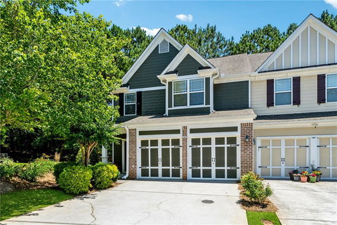 Welcome to your new home, where every detail speaks of luxury and comfort. Nestled within the sought-after Parc @ Wiley Bridge community, this end-unit townhome is a true gem, centrally located between the City of Roswell & Downtown Woodstock. As you step inside, you're greeted by the timeless charm of shiplap trim accents adorning the foyer and family room, setting a tone of elegance that resonates throughout. The heart of the home, the kitchen, is a culinary enthusiast's dream, boasting ample cabinetry and countertop space for both practicality and entertainment. Stainless steel appliances gleam against the backdrop of hardwood floors that span the entirety of the first and second floors—no carpet in sight, ensuring both style and easy maintenance.
