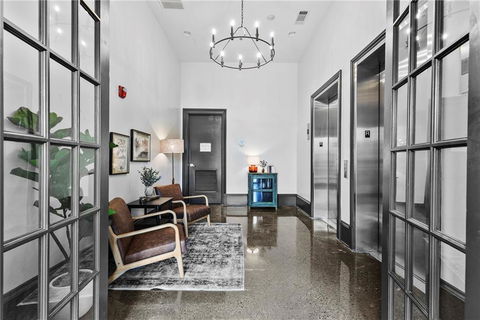 Welcome to comfort and effortless living in the heart of Woodstock's downtown premier gated community on Chamber's Street! Discover the perfect blend of luxury living and suburban charm in this 2-bedroom, 2-bath with all one level easy living and gorgeous views! As one of the larger floor plans in the development, this meticulously maintained and inviting open plan offers a spectacular kitchen that seamlessly connects the living area, dining room, and large covered outdoor balcony, all bathed in natural light. Freshly painted and with an open, airy layout, this split plan unit features soaring 1O½-foot ceilings and 8-foot doors. There are wood floors in most rooms and closets while tile flooring adorns both bathrooms. Crown molding throughout the home provides a fine finishing touch! An upgraded and renovated high end finish kitchen awaits you! Culinary enthusiasts will appreciate the LG stainless steel appliances, ample cabinetry, and versatile island for casual dining or entertaining. The quartz countertops and backsplash are complimented with undermount cabinet lighting. Soft-close pullouts and drawers make for easy handling and 42" uppers provide for additional storage. The quartz topped extended island is more than 5 feet by nearly 7 feet with pullouts providing additional storage. Step outside to the quiet extended balcony with eastern exposure and panoramic views that maximize the stunning landscape. The balcony is further enhanced with outdoor fans and lighting, perfect for year-round relaxation or entertainment. This third-floor home doesn't overlook Main Street or downtown, but rather it faces eastward over treetops, which provides lovely sunrises along with peace and quiet located in a downtown community. The balcony is large enough for seating more than eight people comfortably. Windows are 76 inches, along with an 8-foot balcony door, all and have automatic/programmable shades. This split plan offers two bedrooms and two full baths. The private primary suite has a large, outfitted walk-in closet, dual vanities, a separate water closet, a stand-alone shower, and a large bathtub. The washer and dryer closet are in this bathroom with their own closed-door space allowing for a stackable full-size washer and dryer. The spacious second bedroom has a full bath with linen storage as well and is ideal for guests or turn this room into a den or home office. It also has an outfitted walk-in closet. Upgrades in 2024: New kitchen with LG stainless steel appliances; new hot water heater; new ceiling fans in living area and both bedrooms; walk-in closets outfitted and adaptable/changeable; utility closet holds the HVAC, hot water heater and offers additional storage space; new internal ceiling exhaust fan for the dryer duct; HVAC duct work, dryer vent, and other venting cleaned; all walls, doors, crown molding, and baseboards painted; outdoor ceiling fans and light. This unit also includes two covered beneath the building side-by-side parking spaces near the unit's lobby door. The HOA takes care of a secured building, underneath building convenient parking garage, outdoor spaces, entrance and exit gates, a large community pool with outdoor BBQ grills and neighborhood parks, building lobbies, common spaces, onsite dog park, along with trash, and recycling services. There are even spaces in the parking garage for bicycles. Step outside to varying restaurants, numerous boutique shops and cafes, breweries, neighborhood and city parks and trails; walk to the city amphitheater for one of the free concerts, stroll over to the Woodstock Art House for a show, or meander through downtown to the Reaves House Visual Arts Center. Woodstock is an inviting and a social city, and this residence combines privacy with those conveniences. Do not miss the opportunity to own this beautiful condo home. Schedule your private tour today and experience elevated living in one of Woodstock's premier communities.
