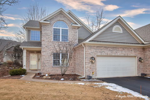 Welcome to effortless living in this beautiful Brighton model duplex, nestled in the serene, secluded neighborhood of the Villas at Bull Valley. With lawn care, landscaping, and snow removal handled for you, you can focus on enjoying the peaceful surroundings and luxurious comforts of this spacious home. This 4 bedroom, 3.5 bath, 2,600 sq ft of finished living space has an open floor plan that is perfect for both relaxing and entertaining. The living room, with its soaring 18-foot ceilings, gleaming hardwood floors, and cozy gas fireplace, flows seamlessly into the modern kitchen, complete with granite countertops and under-cabinet lighting. French doors open into a versatile office or dining room, while the large main deck-backing to tranquil woods-features a power awning for year-round enjoyment. Main floor laundry w/utility sink. The main floor primary suite offers a private retreat with a spa-like bath, including a double vanity, soaking tub, and separate walk-in shower. Upstairs, you'll find two bright guest bedrooms, a full bath, and a cozy loft space perfect for reading or relaxing. The finished walkout lower level is a home within a home, featuring a large bedroom, full bath, and a spacious family room with a wet bar that opens to a covered lower deck. There's ample storage space throughout, ensuring everything has its place. Workshop area has an area for woodworking projects. New EV charging station in the garage. Optional golf and dining memberships at the Bull Valley Golf Club enhance the lifestyle, offering endless opportunities for recreation and socializing.