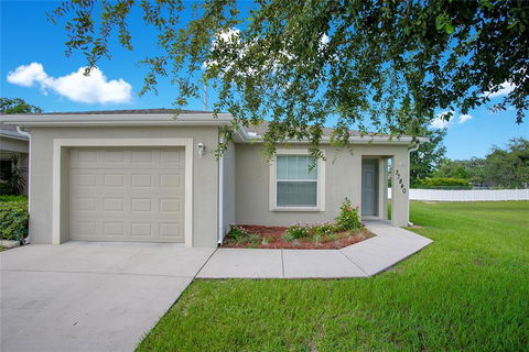 One or more photo(s) has been virtually staged. Live luxuriously without worry within the highly-coveted 55+ community of Walnut Grove. Built in 2015 with superior craftsmanship and a high attention to detail, this spacious three-bedroom 1,536+/- square foot corner unit villa offers its next resident's peace and convenience with nothing lacking. The open concept design is filled with sunlight illuminating the fine modern finishes and neutral wall tones. Get ready to find your love for cooking again in the fully-equipped kitchen with elegant solid wood cabinetry, stainless steel appliances, granite countertops, and a breakfast bar that allows guests to pull up a bar-stool and chat with you while cooking. Laughter will fill your home from the adjoining living room and dining area leading to the private covered lanai where you can soak up the warm Floridian breezes or keep an eye out for birds and other wildlife on the expansive open green space in the distance. After a day of work or play, you’ll find yourself sinking into total relaxation within the walls of the primary suite with a luxurious ensuite with dual sinks and a walk-in tile shower! Some of the numerous amenities found at this villa include an attached one-car garage, a low HOA fee that covers lawn care, ceiling fans, lovely gardens, a covered entrance, and plenty of storage space. Grocery stores, downtown, shopping, restaurants, parks, and businesses are only minutes from your doorstep, making it ideal for those looking to immerse themselves in this energetic and charming community.